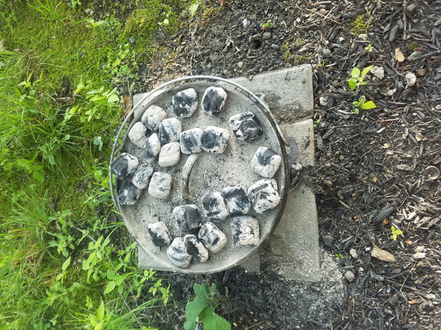 Light approx 25 charcoal briquettes in a charcoal chimney.